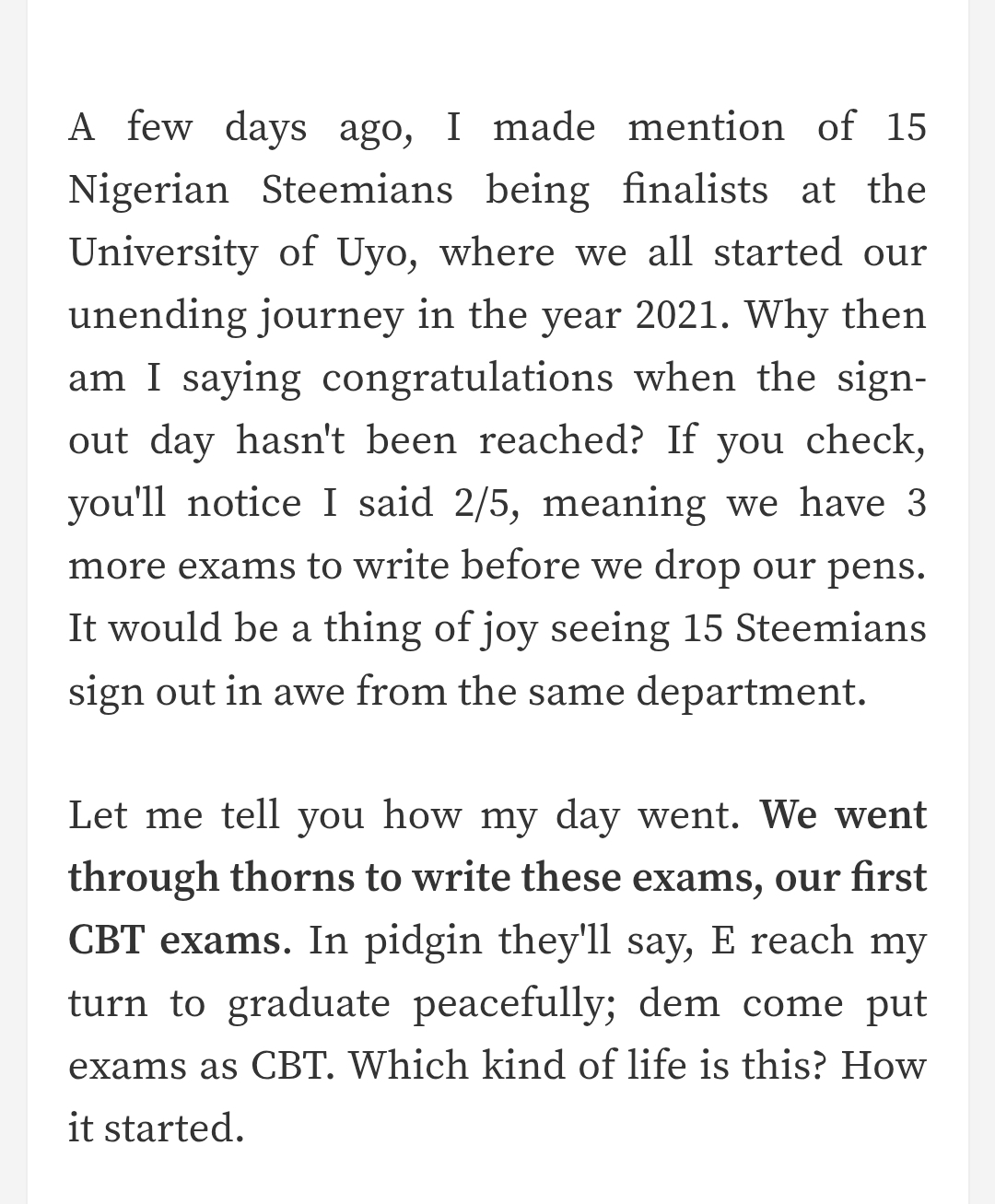 These are questions we should ask ourselves when thinking of what to write. You don't necessarily need to make a subheading of these questions. You can isolate your experiences, challenges and other things after giving us a summary of the post, or you can include these in-between your narration. With these, you can write more than 300 words and add quality to your post.