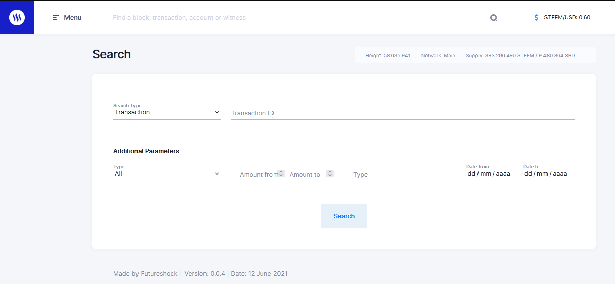Me devuelvo al menú y busco la opción de búsqueda aquí podemos explorar varias series de cosas como por ejemplo los parámetros de una cuenta o dicha transacción ponemos la fecha desde hasta id de la transacción que queremos buscar podemos ver cuenta y comentarios.