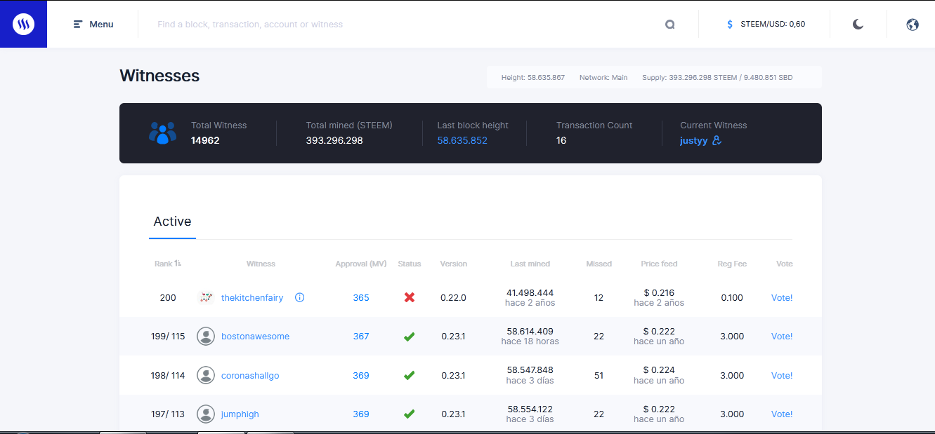 Nos vamos al menú y buscamos la sección de los testigos hay fácilmente nos aparecerá una tabla donde podemos ver los usuarios que estén activo en la red blockchain y los que no están activo hay también podemos ver todos los datos de ese testigo.
