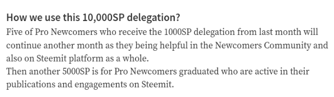 We will keep an eye on your activities on Steemit and might put you on the delegation list for receiving a delegation of 1000SP for a month or more if you have been active and being useful in the Newcomers Community.