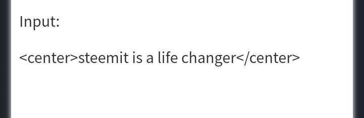 Another used markdown is to center a text. When centering a text, we use <, the word center , / and then close with >. Example is shown below.