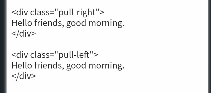 In alignment of text into two sides, we normally use the justify method but now, instead of text-justify, we use pull-right and pull-left. Example is given below.