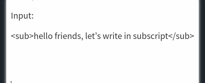 Subscript writing means writing in small text size. It can be done using (</>) and the word (sub).