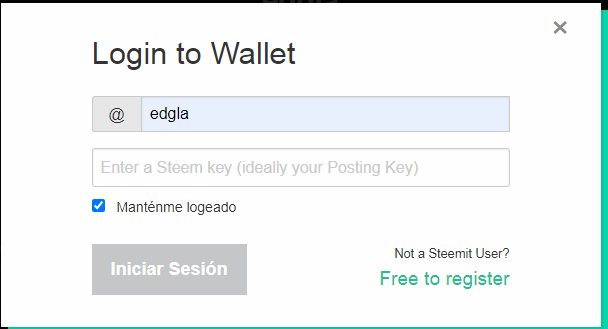1. Inicio sesión en el wallet de mi cuenta de usuario de steemit, con mi clave de activación.