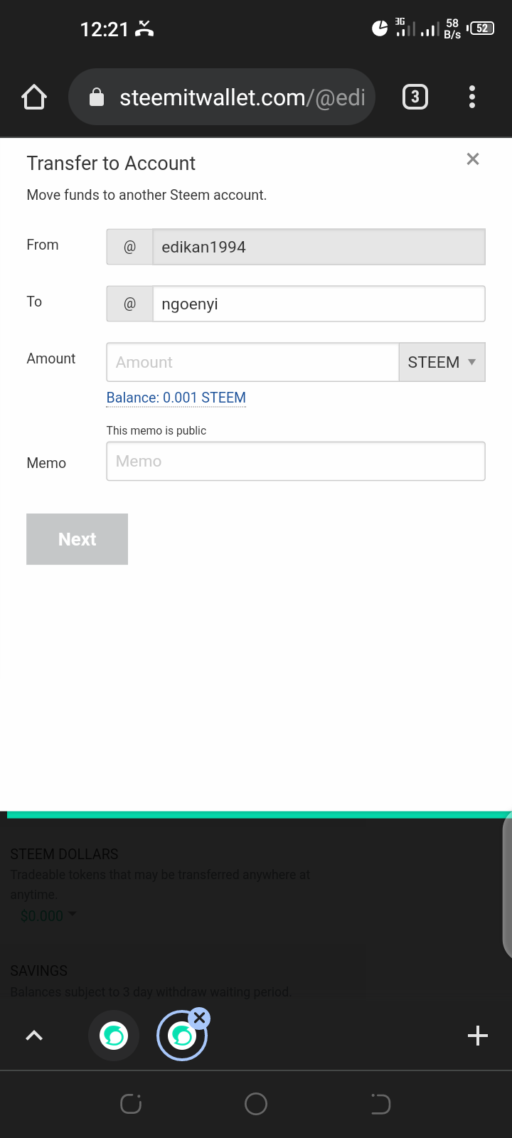 •Input the amount and click next(as shown in the image below)