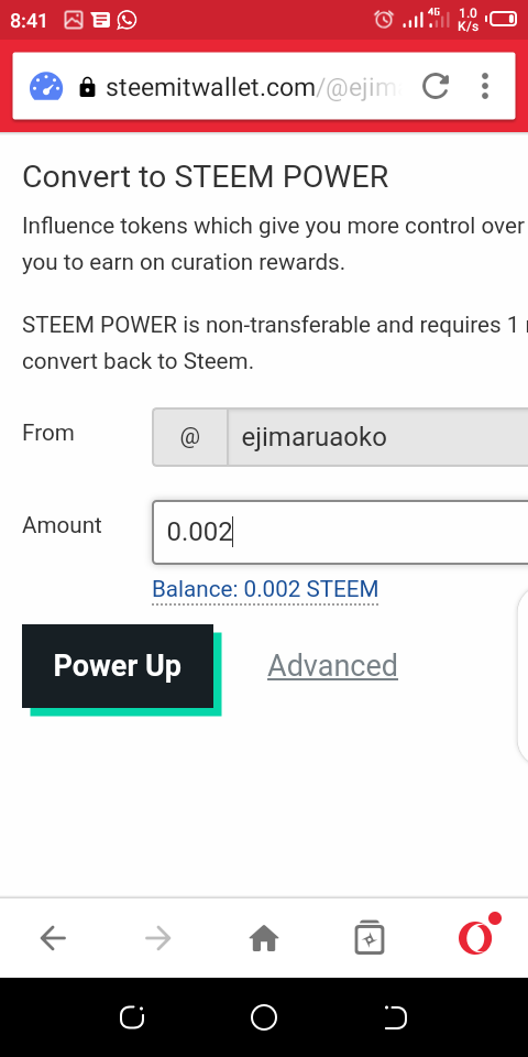 • next you click power up. A confirmation message will pop up showing that your steem power has increased.