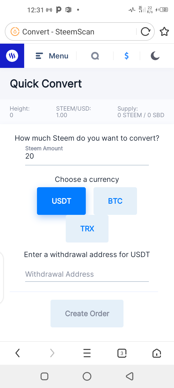 This particular feature enables a user to convert his/ her steem to any cryptocurrency of his/ her choice either to USDT, TRX or BTC.