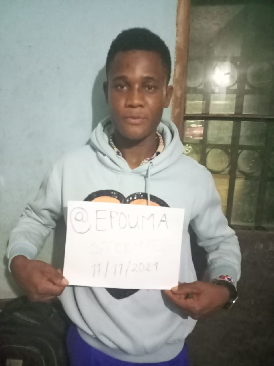 Hello my name is Epouma Fedrick and am known on steemit by the name @epouma and I'm a native of Mbouassoum a little village found in Melong in the Litorial region of Cameroon where I currently live.
