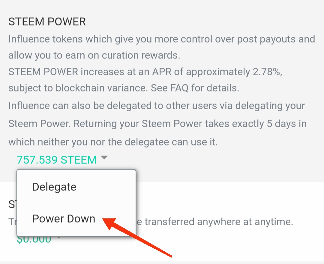 Untuk melakukan POWER DOWN, masuk ke STEEM POWER lalu pilih power down kemudian tulis nominal Steem yang akan kita power down.