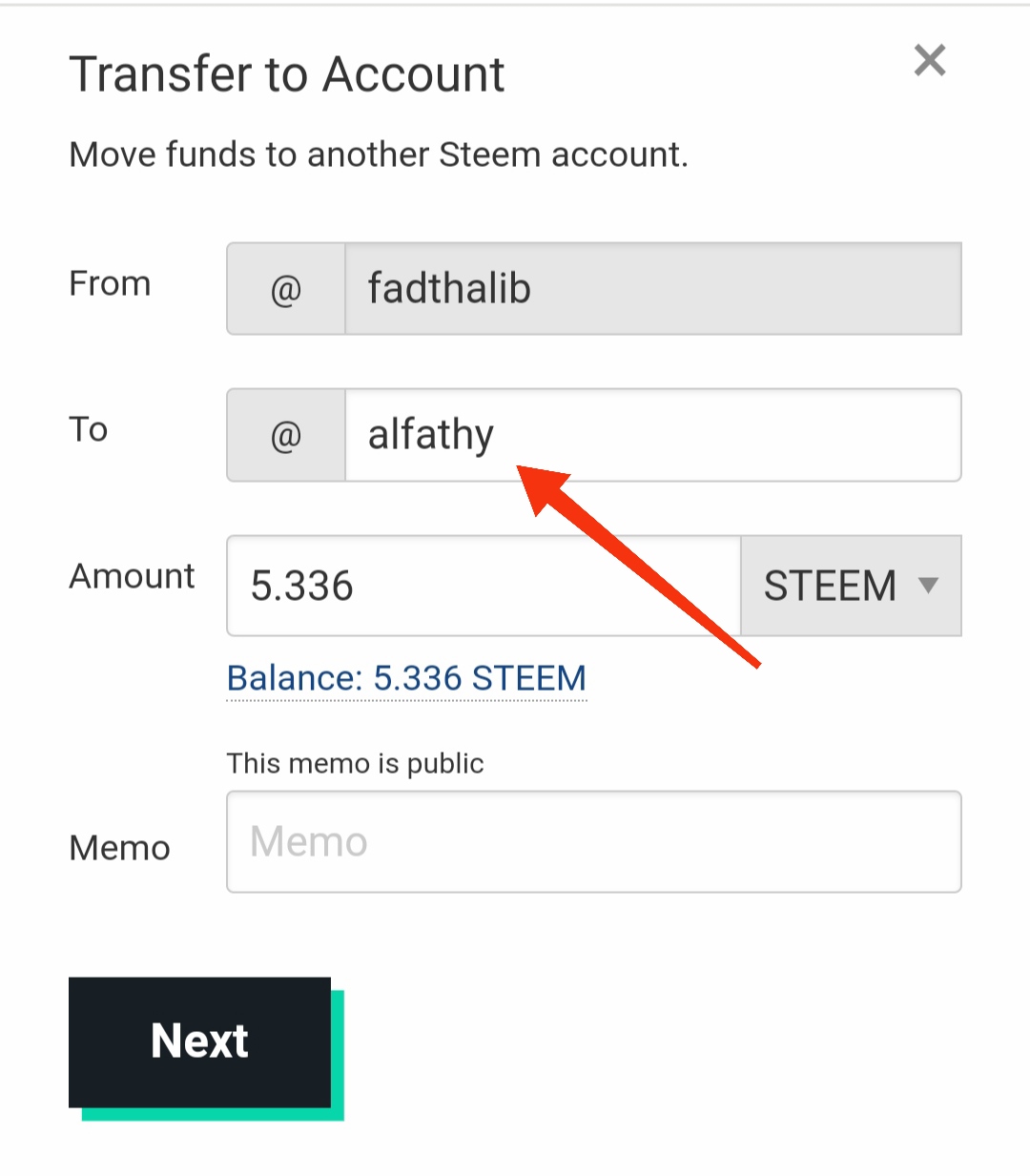 Setelah muncul menu transfer ke akun maka isi dengan nama akun yang kita tuju dan nominal steem yang akan di transfer.