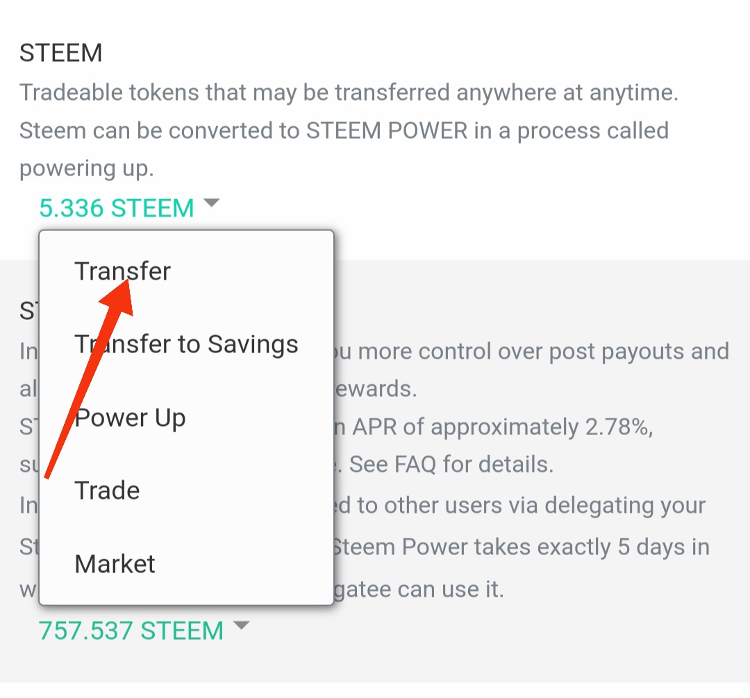 Setelah kita masuk ke walet kemudian pilih STEEM CAIR maka akan muncul beberapa instruksi. Lalu pilih TRANSFER