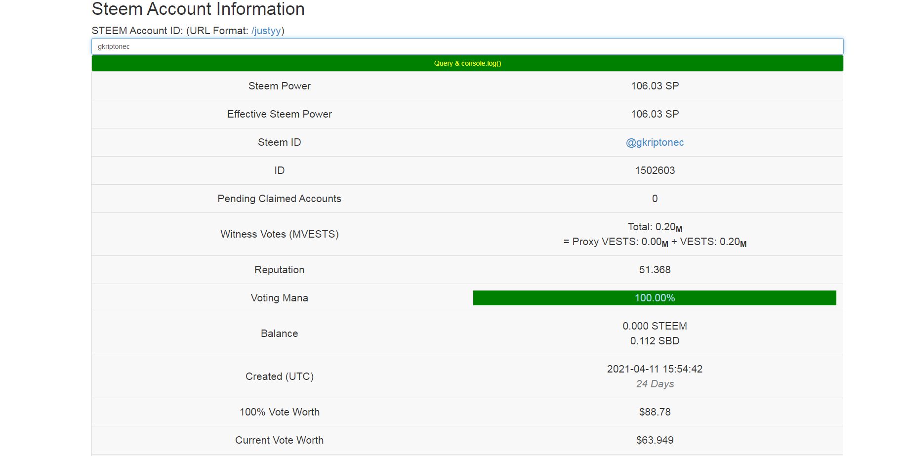 Steem Account Information is the tool that shows info about users. For examples: steem power, reputation, voting mana, balance etc.