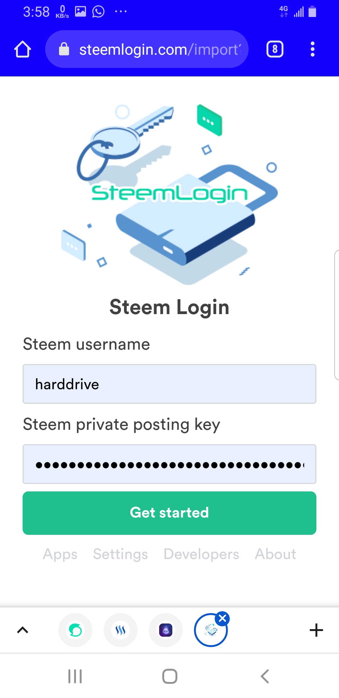 - Login with your steem account credentials and click “Get Started”. This will take you to next page
