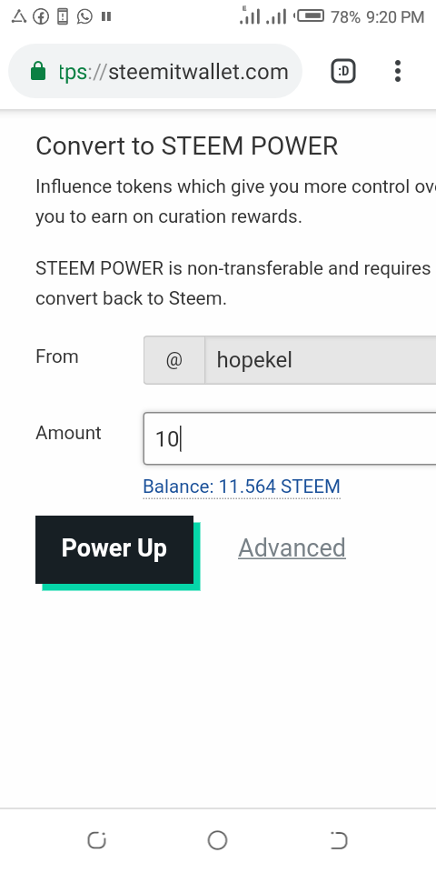 iii) Then you select how many steem you want to power up.