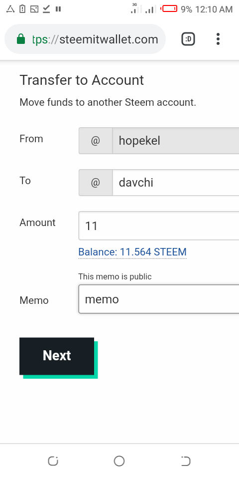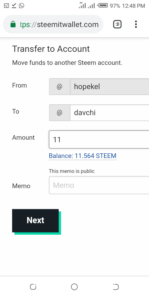 iv) then you will see a space on where to write the user name of the person you want to transfer the steem to his/her account.