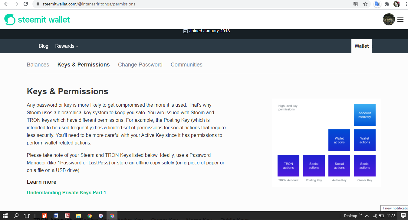 Memahami berbagai kunci penting di steemit, kunci atau kata sandi terpanjang yang harus saya simpan secara aman. Dan password pada steemit sangat berbeda dengan akun media sosial lainnya. Jika media sosial lain kita yang mengatur kata sandi dan dapat di ubah kapan pun kita mau, namun berbeda di platform steemit yang memiliki berbagai kunci akses dan sangat panjang, jika lupa saat ingin mengakses maka akan sulit untuk menggunakan akun yang sama, karena satu kunci panjang itu untuk satu akun dan satu gmail yang sama, dan saya mengatasi agar tidak lupa menyimpan melalui gmail atau perangkat elektronik lainnya.