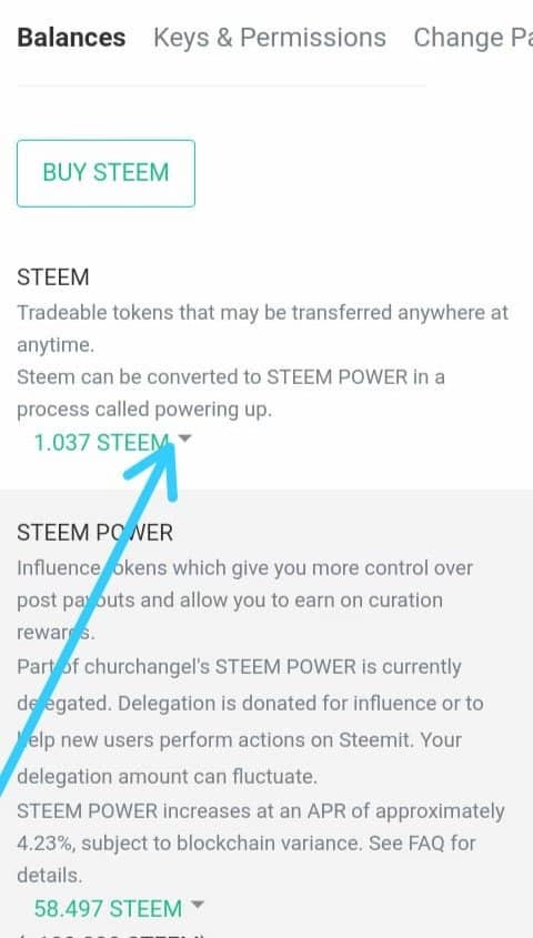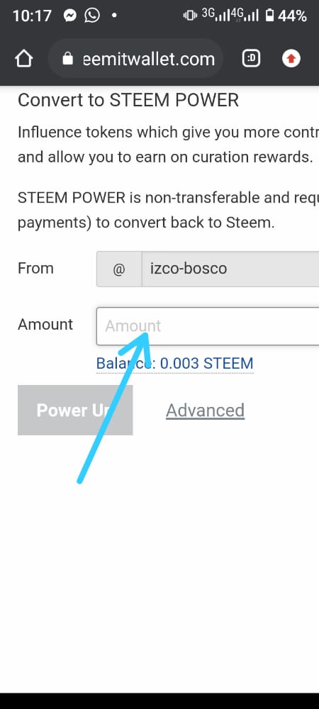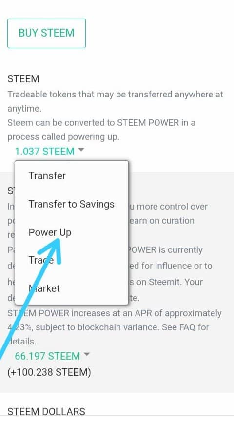 iv). Input amount of steem to power up then click power up.