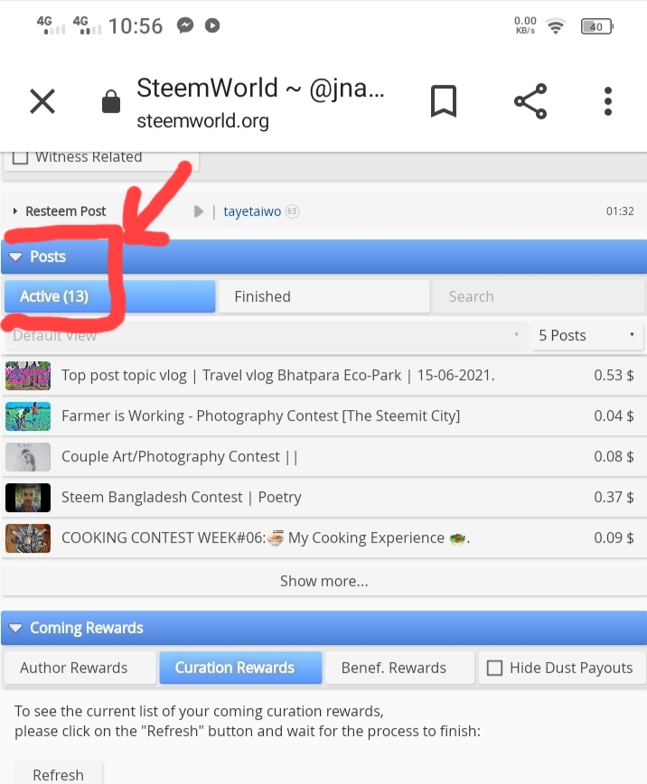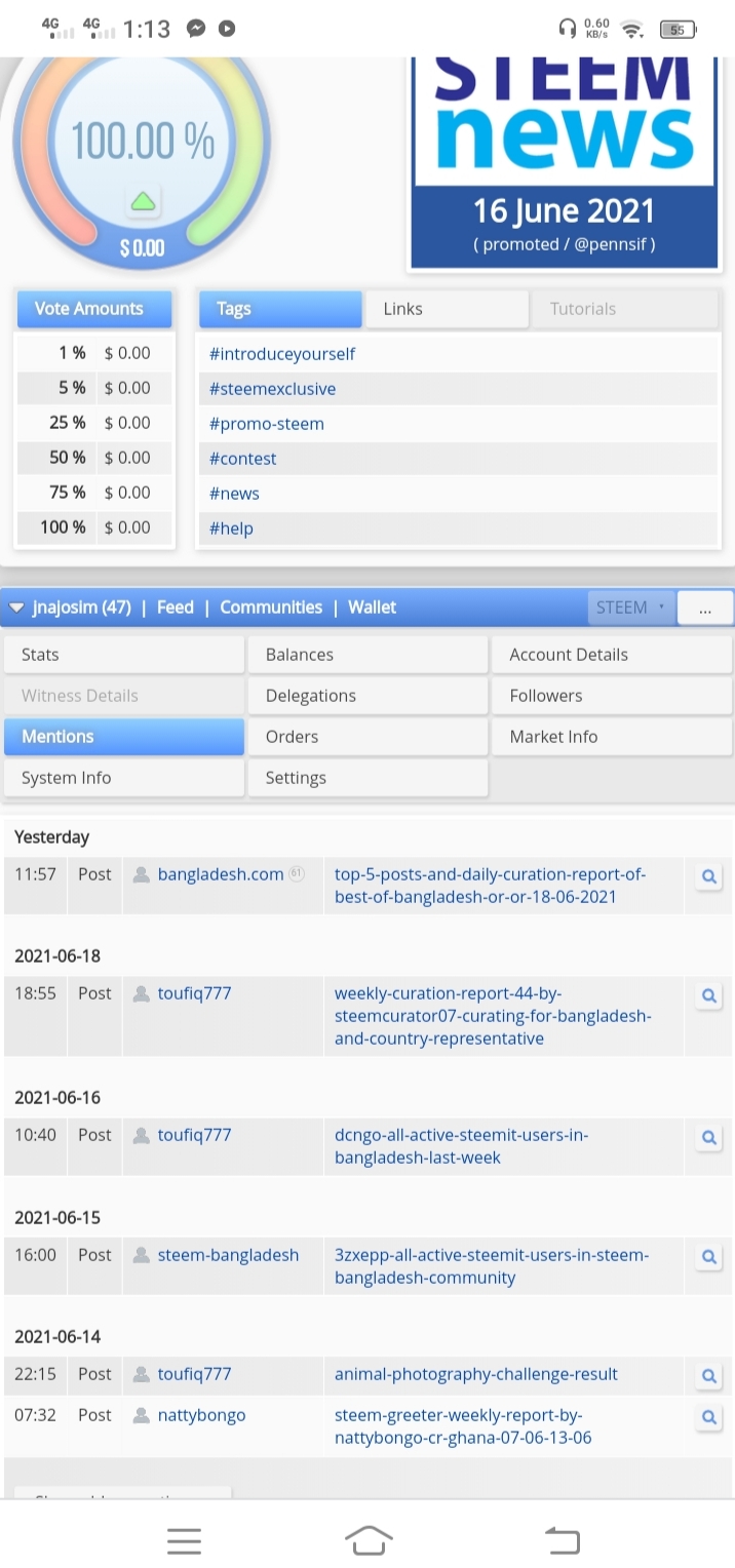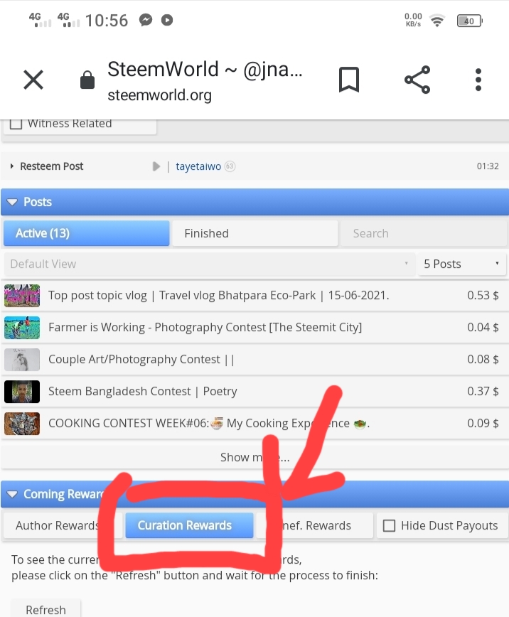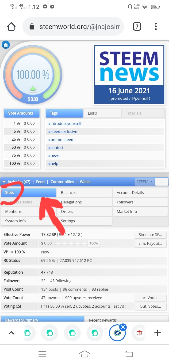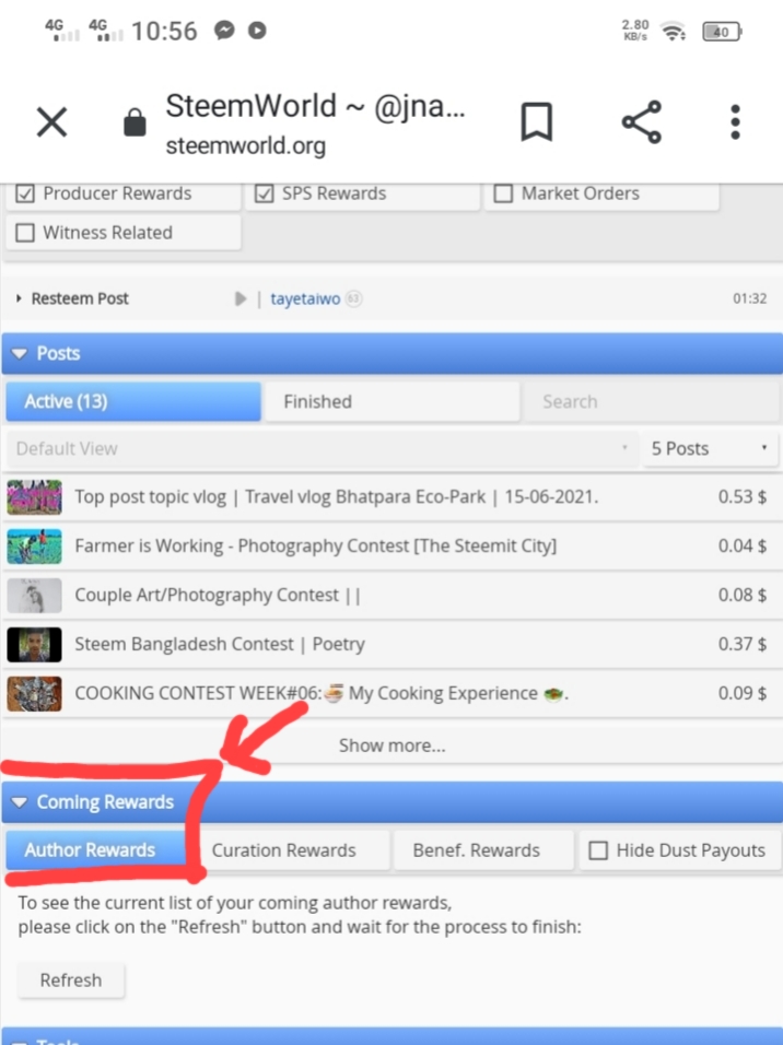 To take a look at reward summary, you will be required first and main to sign in, these will require your username and private posting key. After signing in, click on to dashboard then you can without difficulty see your remaining 30 and ultimate 7 days summary of your account.