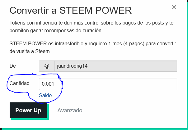 El lo mismo que transferir pero en ves de darle a transferir le vas a dar a power up, despúes pones la cantidad.