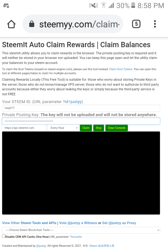 En este formulario, sólo colocamos nuestro nombre de usuario y la clave de posteo, configuramos la frecuencia con la que queremos que haga el autoreclamo, presionamos la tecla de claim y listo, dejamos que se encargue de reclamar nuestras recompensas.