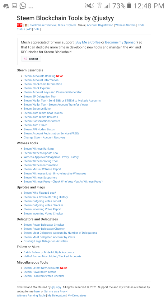 cortes en el suministro eléctrico, fallas en el internet y mala cobertura de datos moviles, pero por acá estoy nuevamente, para seguir con el cumplimiento de logros, de la comunidad de recien llegados, ésta vez, corresponde a la revisión de https://steemyy.com/list-of-tools.php que es igual a Steem Blockchain Tools by @justyy, creador de esta herramienta.