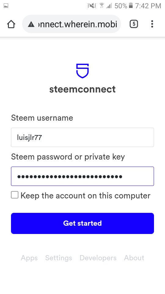 Precionamos en Get Started y así ya habremos delegado, nuestros SP. Pero si decidimos hacerlo a través de https://steemconnect.wherein.mobi/