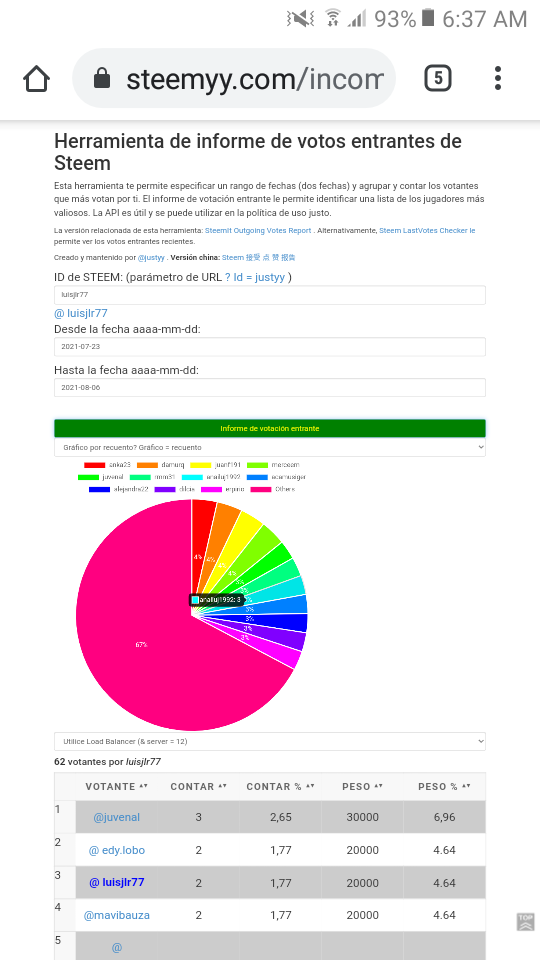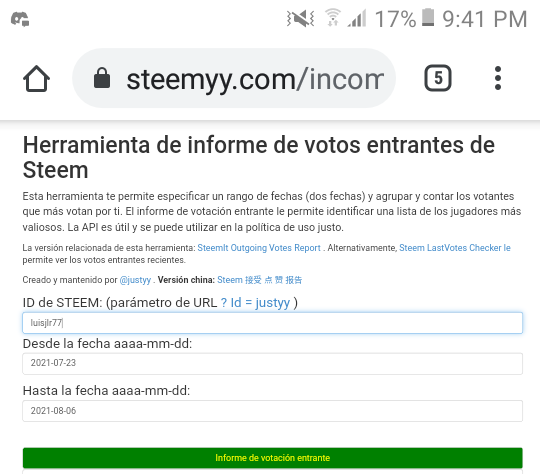- Verificar el informe de votos entrantes, para un periodo de tiempo específico, utilizando el Informe de votos entrantes de Steem.?