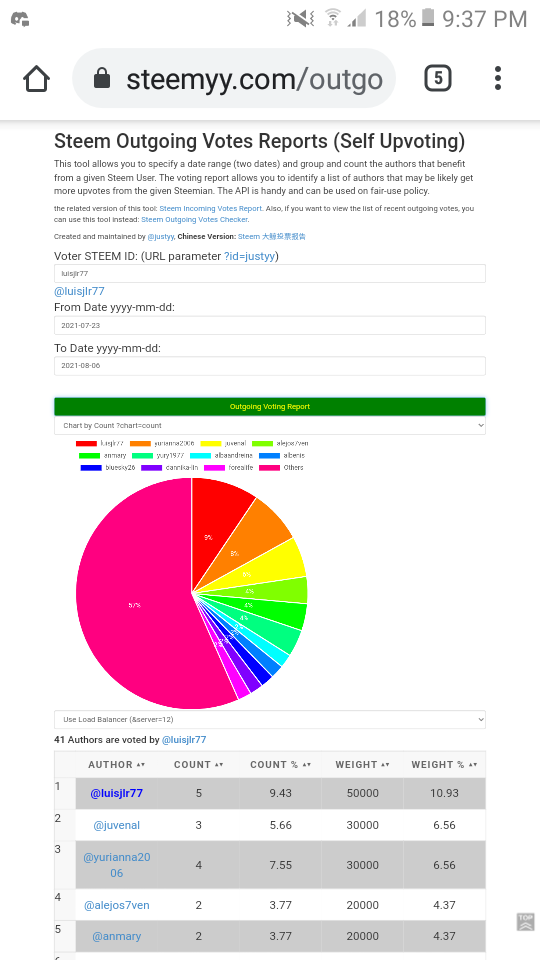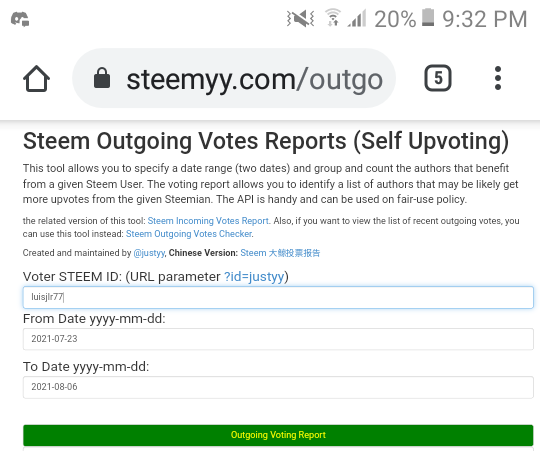5. Verificar el informe de votos salientes, para un periodo de tiempo específico, utilizando el Informe de votos salientes de Steem.?