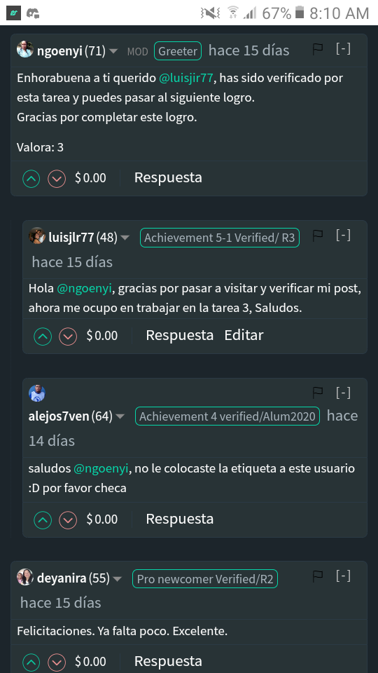 Hi @luisjlr77, Thank you for diligence in completing your achievement tasks. You have been verified and may now move to the next achievement.
