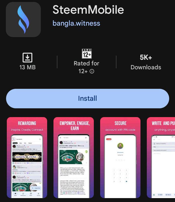 I tried searching for Steemit app, but what I got was Steemit mobile and I was a little confused as to whether it's the actual official app or not, since I read that we have to be careful where we put our Steemit keys. But anyone that reads, if you know you can tell me so I'll finally download it. They call it Steemit Mobile. Interestingly I did see the Bangla witness in Steemit so there's a chance that's the source. It'll be nice to have mobile app for a website like this, it already looks cool as a site.