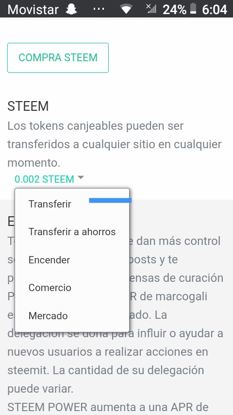 *- Darle clip en Steem y seleccionar la opción transferir.