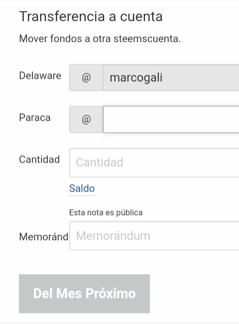 *- Te aparecerá una ventana llamada transferencia a cuenta, allí colocar el destinatario y terminar la operación y dar clip en próximo.