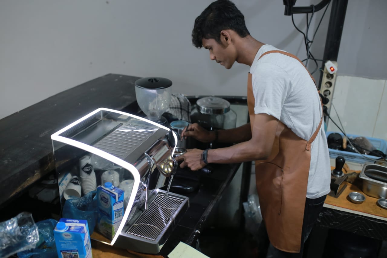 sehari-hari saya bekerja di sebuah cafe sebagai barista, kalau teman-teman pernah berkunjung di marajo coffe area di depan terminal pertamina hagu selatan, di situlah tempat saya bekerja.