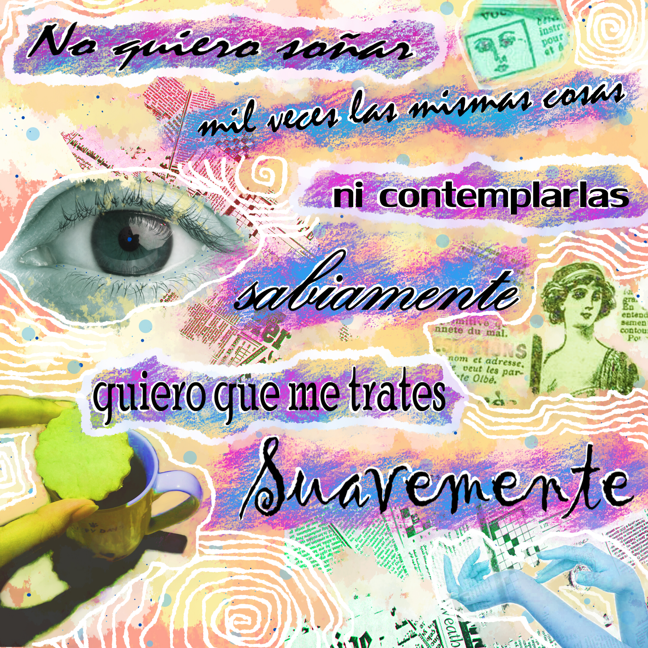 También me gusta hacer collages, este lo hice el año pasado utilizando el programa paint tool sai, con parte de la letra de la canción de