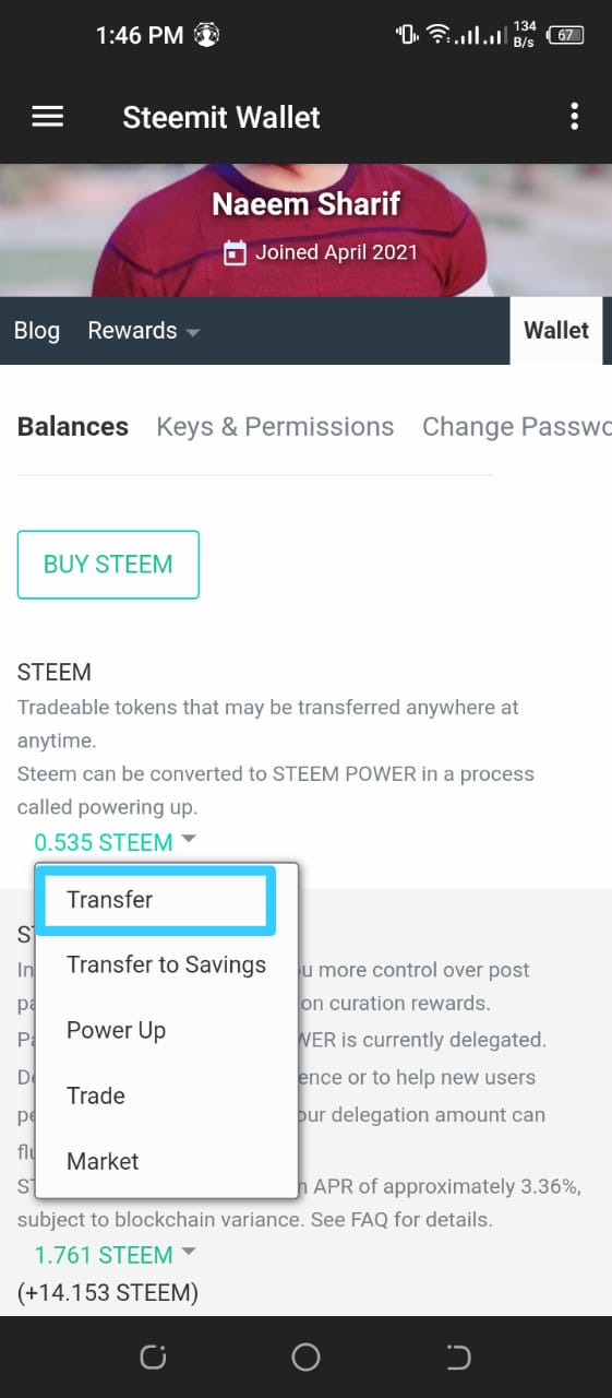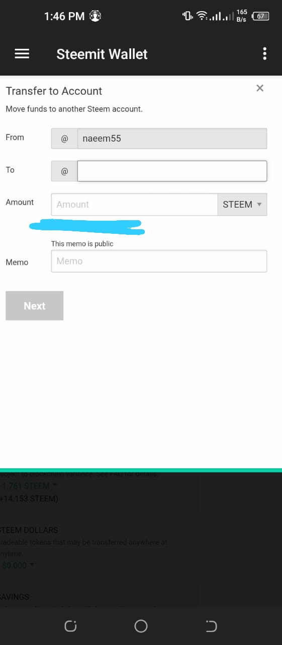yes why not I say yeah Let me explain it Firstly after opening your profile you should click on my port wallet Your wallet is opened now Then i click on steem a main manue list would be shown on my screen After that you have to click on transfer button A new page would be opened where you have to enter your user name with the user name of the person who you want to transfer steem See the following picture to know better that how to transfer steem to another steem account.