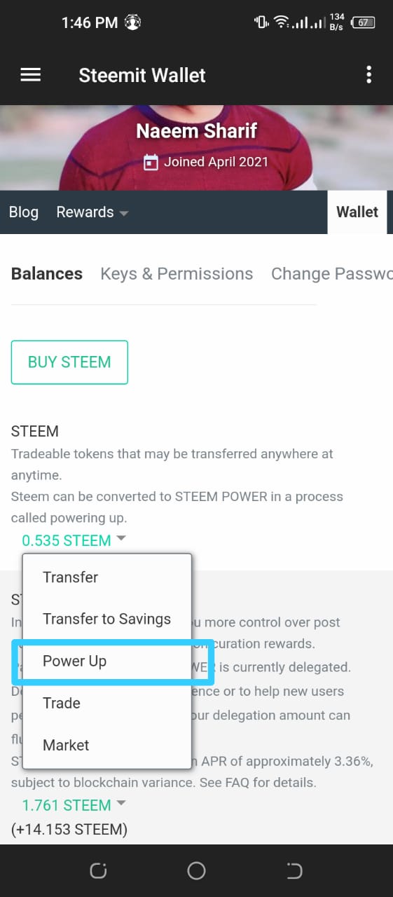 For powering up first you have to open your steem wallet then click on steem the menu list will be opened as shown in your screen After that click on power up and entered the digit how much power up who will u want.