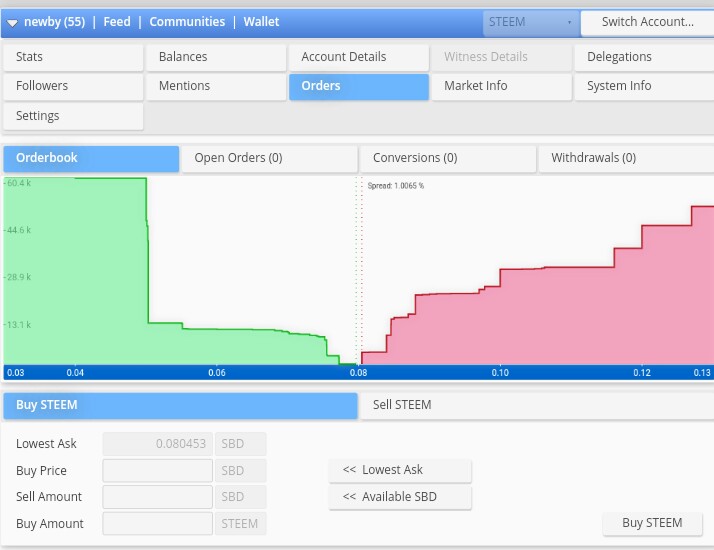 Apabila anda ingin melakukan transaksi jual SBD atau membeli STEEM, anda bisa melakukan pemasanan disini. Disini anda bisa menentukan batas atas dan batas bawah hatga jual/beli SBD dan STEEM.