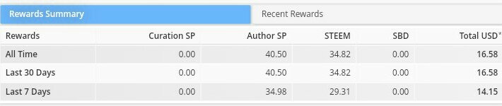 Bila di lihat pendapatan hadiah selama 30 hari terakhir, saya mendapatkan hadiah sebesar 40,50 Author SP dan STEEM sebanyak 34,82 dengan Total USD* 16,58