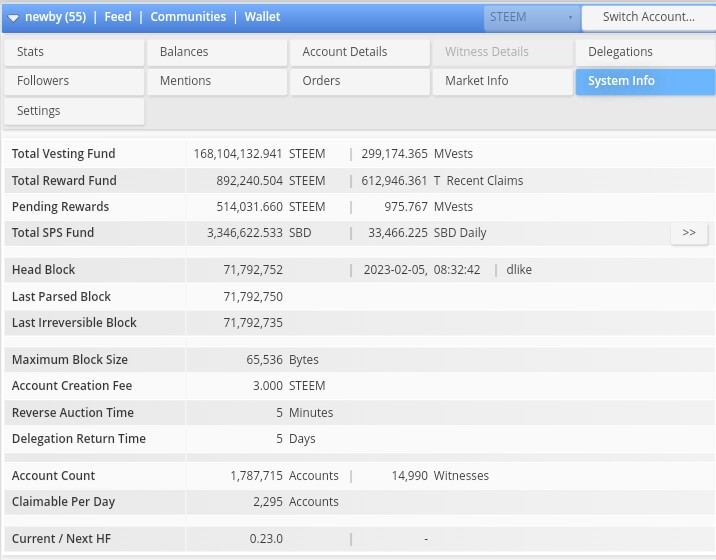 Disini ditampilkan informasi sistem blockchain yang berhubungan dengan akun anda.