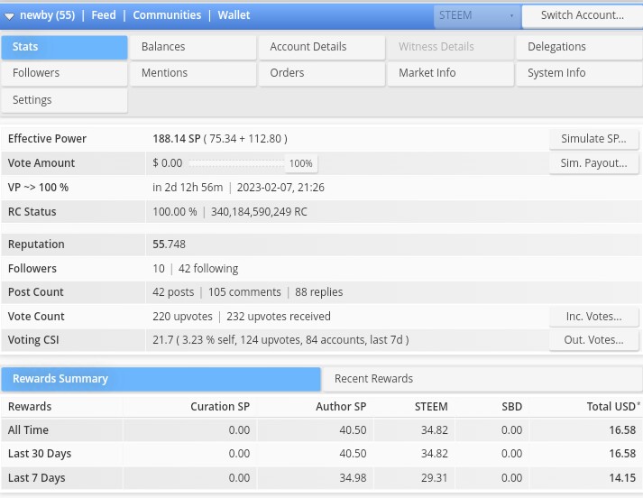 Achievement 5 task 1 : Review Steemworld @newby