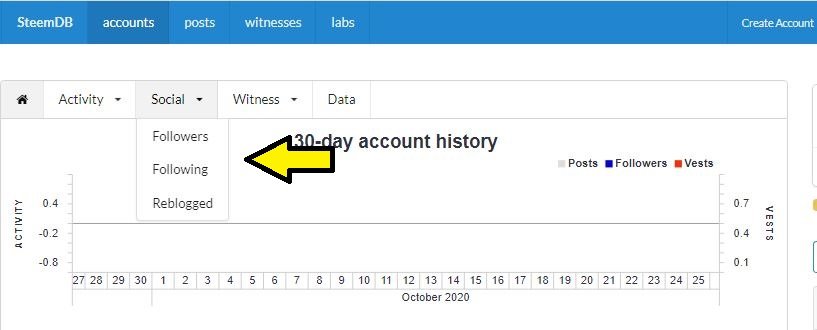 1:: Login to https://steemdb.com/ and click on accounts and fill in your steem username.