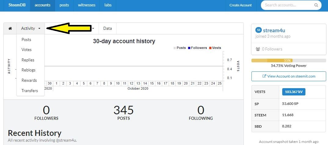 HOW DO I CHECK THE DIFFERENT ACTIVITIES: POSTS, VOTES, REBLOGS, REPLIES, REWARDS, TRANSFERS, ETC