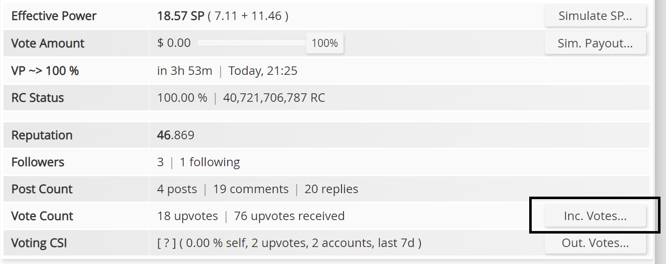 you can check your incoming and outcoming votes from Inc. Votes button below the right of your vote information. This will display the voting information that you have done and voting from other user for your posts for 7 days.