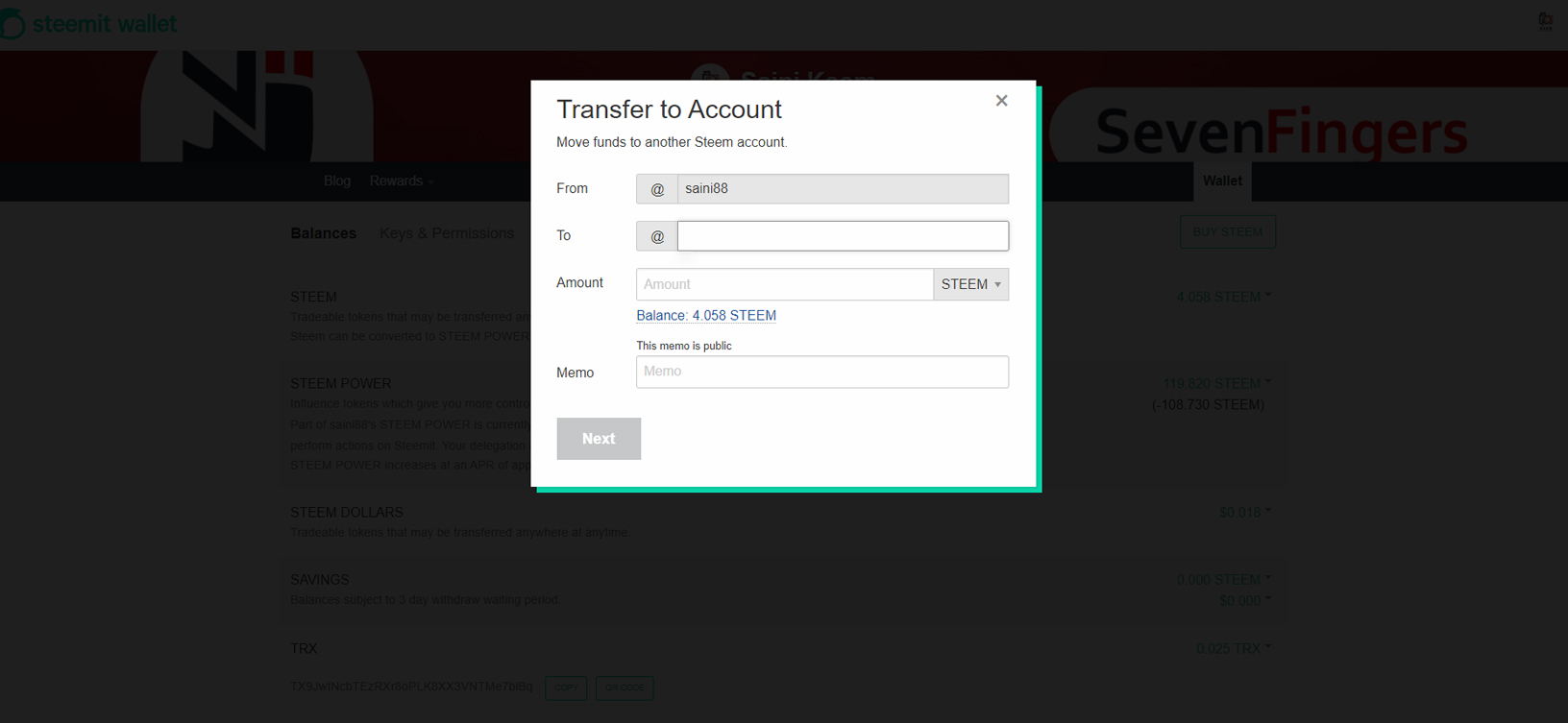 Bagaiamana cara mentransfer STEEM Ke akun orang lain?