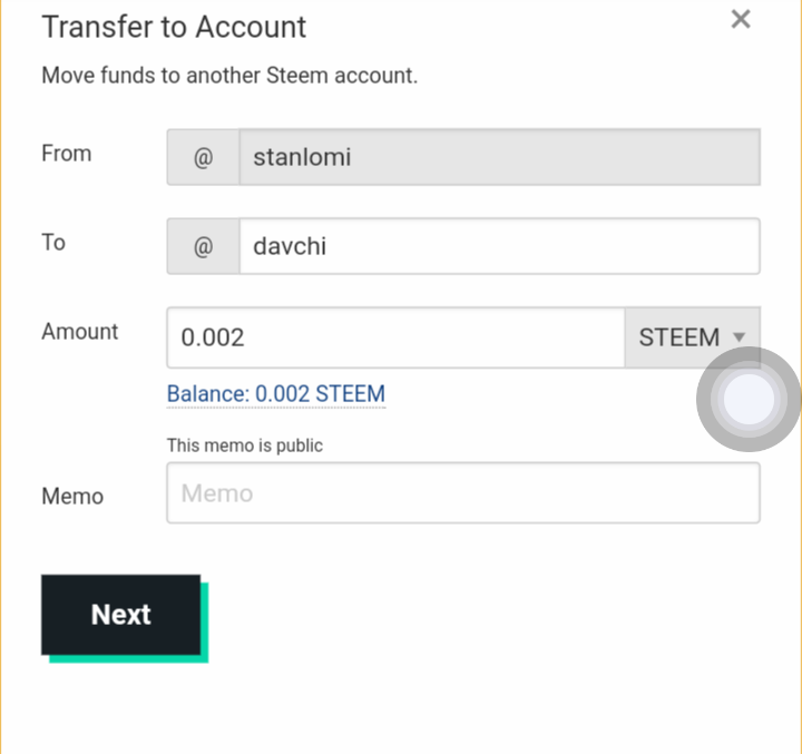 Below the simple steps involved in the transfer of steem token to another account.