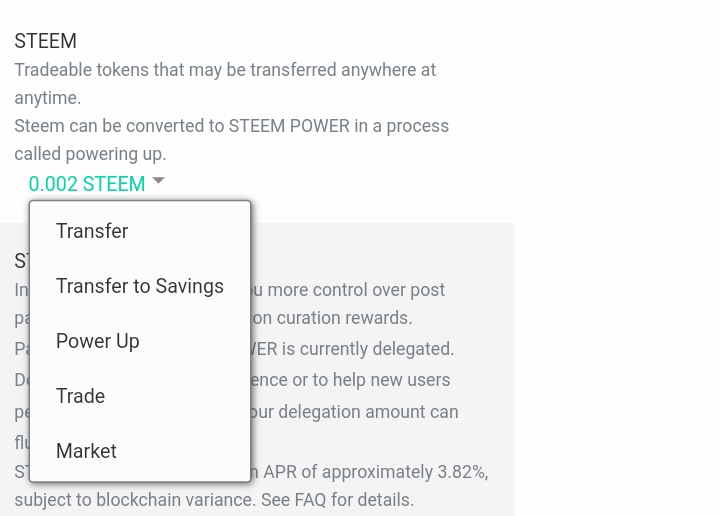 If you're using a mobile phone, your steem balance will appear on the left side of your screen. Click on it and a column will slide down.
