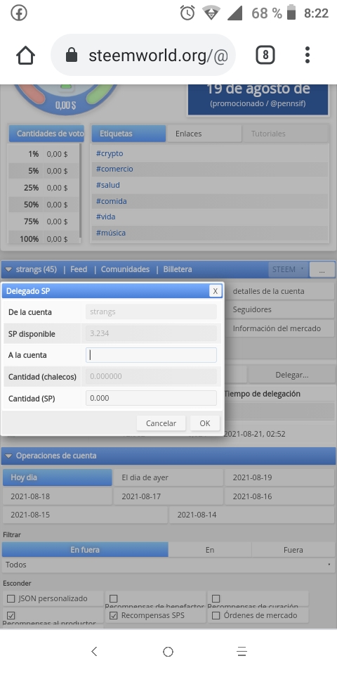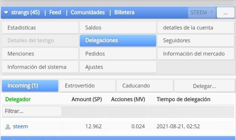 ✓ Delegación saliente, es cuando Asignas a otro usuario Steem Power osea (SP).