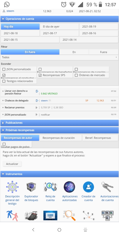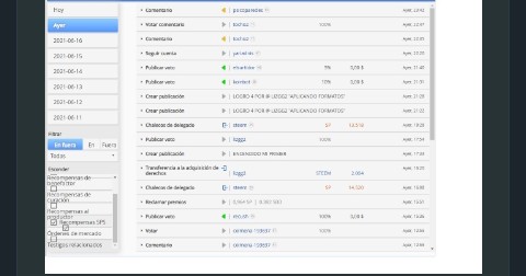 ✓ Bueno primeramente vamos a la opción en nuestro equipo o móvil en mi caso y buscamos donde dice Operaciones De cuenta una vez estando allí damos y podemos apreciar y visualizar cada día de operación de nuestras cuentas en Steemit específicamente los 7 últimas hechas en la semana. Cómo se ve en la imagen de arriba.