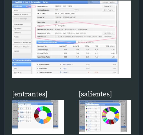 Esta nos da el valor en SP, indicando el valor del voto, si se otorga muchos votos y comentarios bajará El valor del Sp, es recomendable solo usar el 15% diariamente y esperar a que vuelva a cargar al 100% Para se utilizado. Esta herramienta te deja saber muy bien tus movimientos en la comunidad.