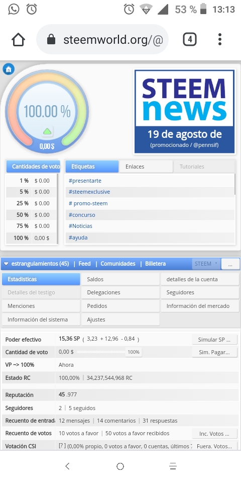 Logro 5: consigna 1por @strangs reseña Steemworld.org
